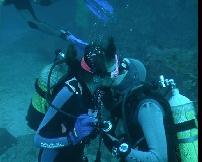 DUC's Vice Chairman Colin celebrates with Jill at 23m on Aliwal Shoal outside the entrance to Cathedral while Anton Videos Raggies cruising the shoal - Anton uses the Sony TRV 30 Camcorder with the - Editing System Studio 7 by Pinnacles / Miro
