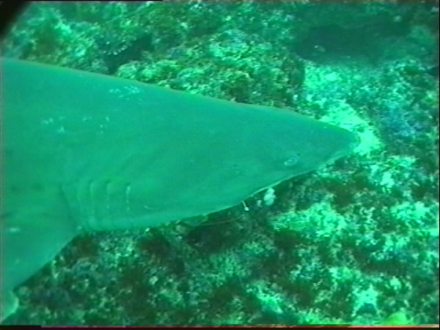 Aliwal Shoal Raggie with Fish Hook and Line ( Canon Hi8 Video Still ) Underwater World Durban arranges the Yearly Shark Dive Bonanza with coordinated launches from Aliwal Shoal and then the get together (above)